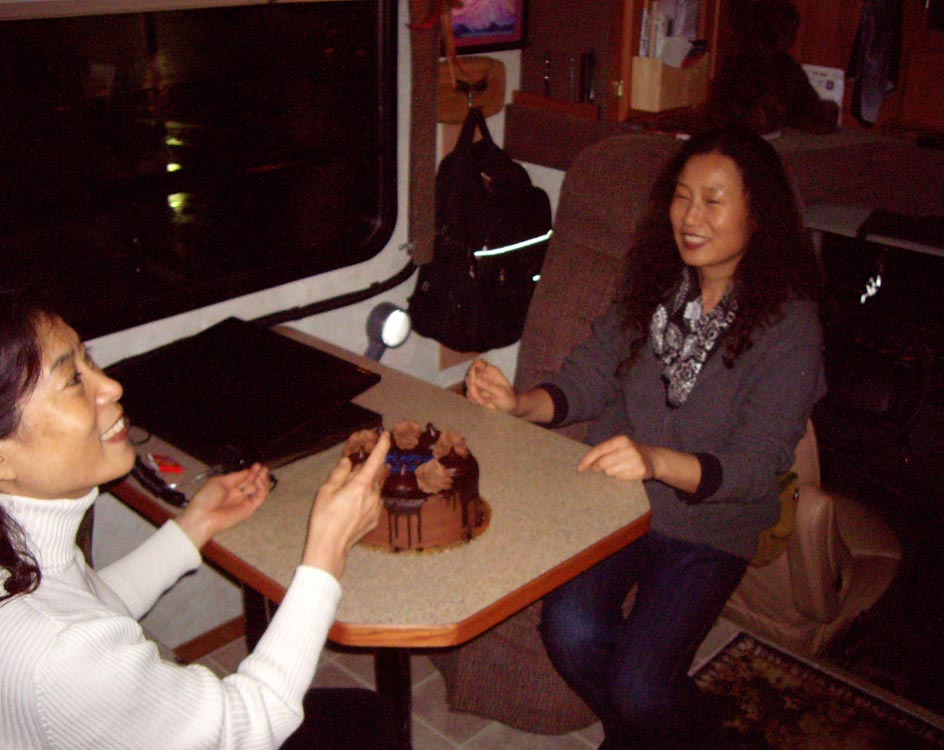 Back in the office, Eric Wilder presented me with a cake... Teresa looking on... |