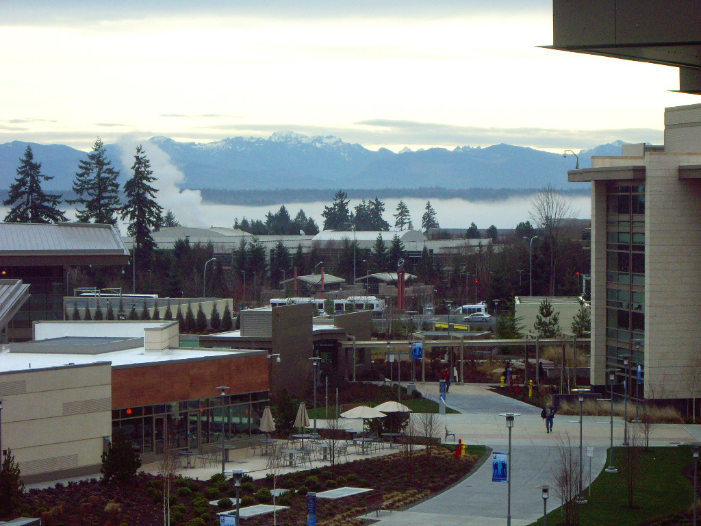 Tuesday, February 9 Facing west from the 4th floor of Studio-C toward the Cascade Mountains and observing a fog over Lake Sammamish... |