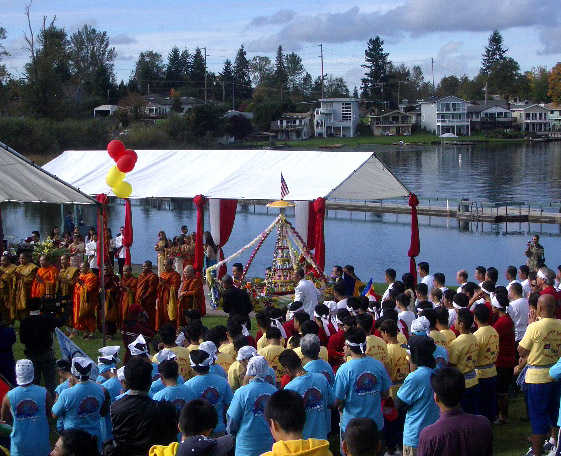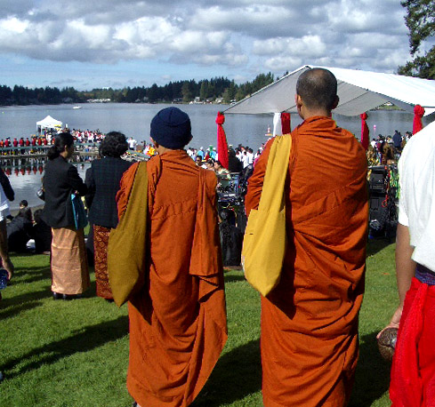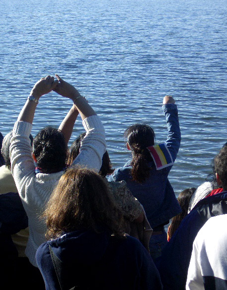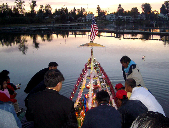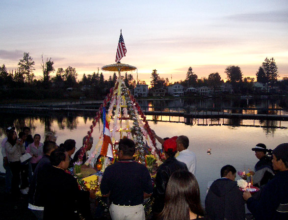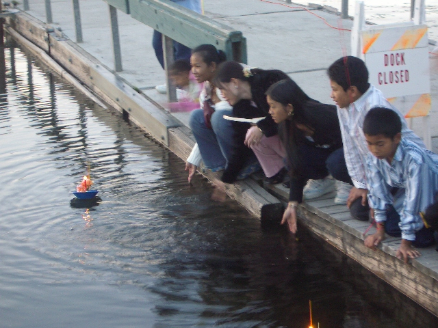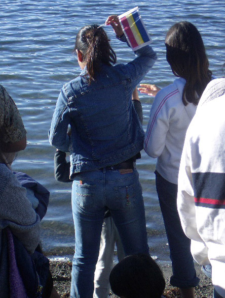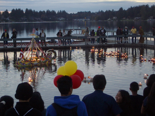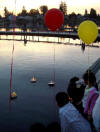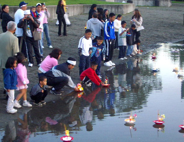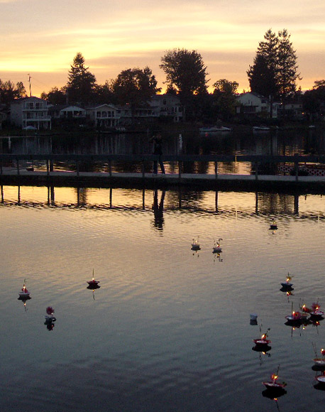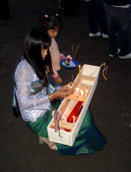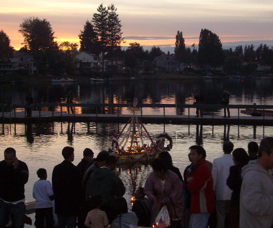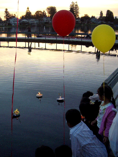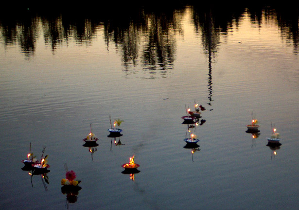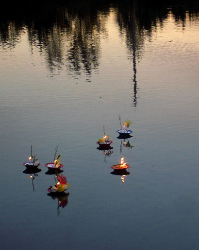 Ceremonial candles were set afloat as daylight waned...