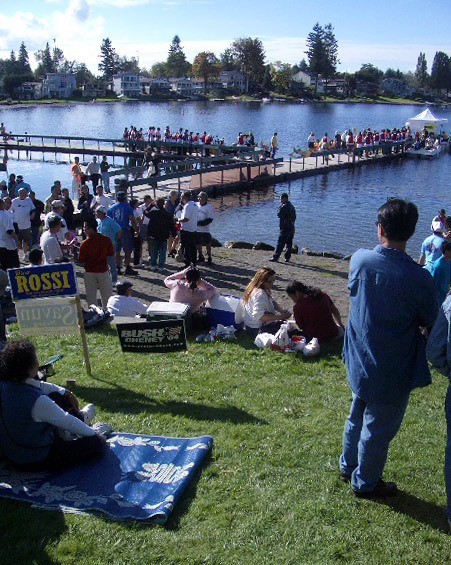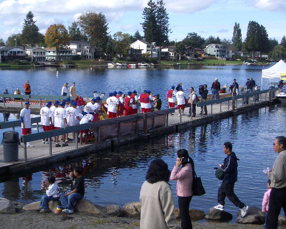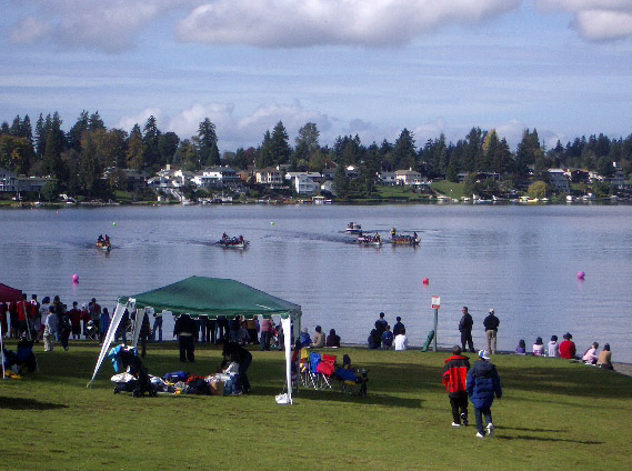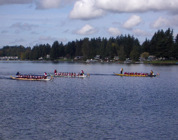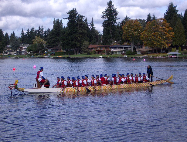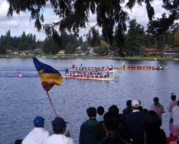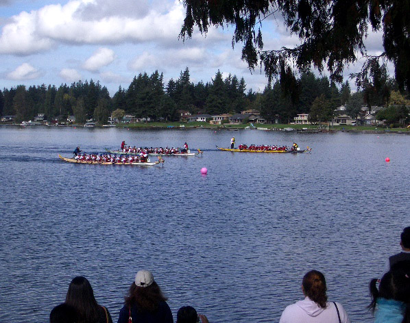 Dragon boats race for the championship...