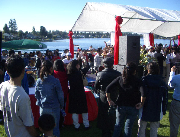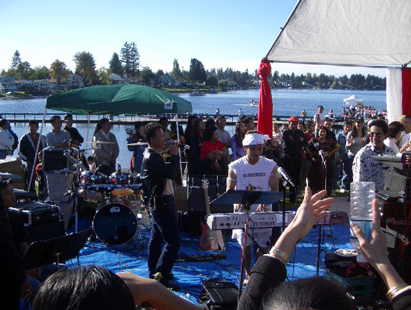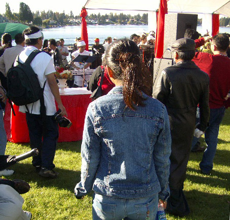 me to the festival), clad in blue denim. Hong was camera shy!