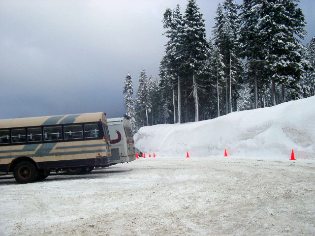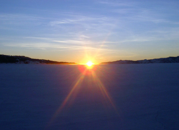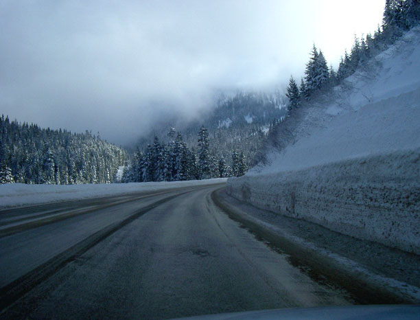 We reached the Grand Coulee at Dry Falls Dam and Banks Lake at 4:30pm under freezing fog and darkness. We looked for lodging at Coulee City, finding nothing. So, we headed north on SR 155 up the Grand Coulee canyon, toward Electric City and Grand Coulee Dam. With visibility down to about 50 feet we could barely discern a great canyon wall to our right and water to our left. We suspected that we were traveling through spectacular country, but we would not see it until the following day... |