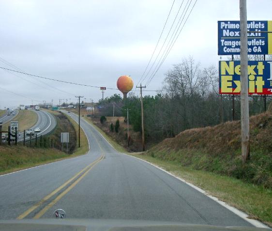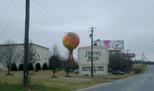 Heading back up to Charlotte... Father dreams of that new mandolin... or was he pondering the Peachoid? |