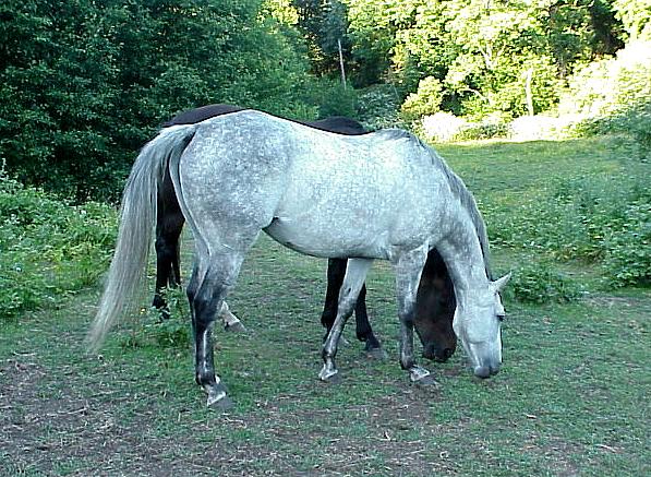 some horses on the way back up the hill. The Olympic Mountains are in