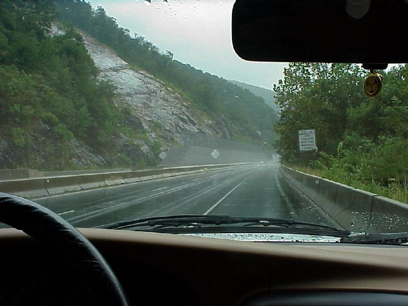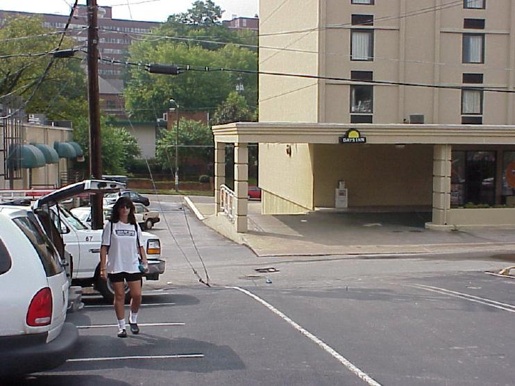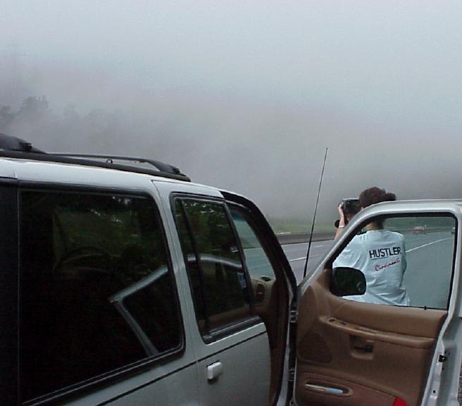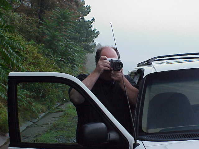 On the way, in the fog shrouded Great Smoky Mountains of North Carolina. Carina using her new Sony Mavica FD91... turning it on me... |