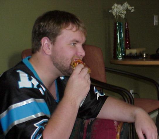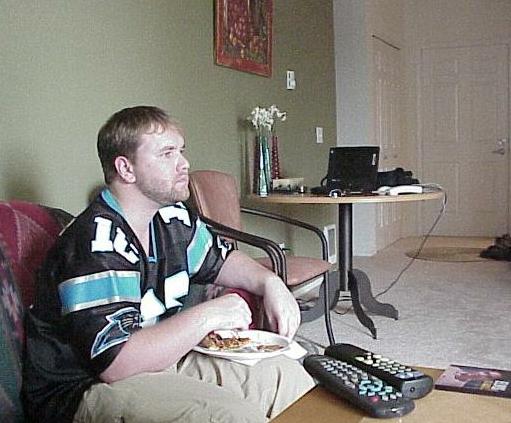 John loves his Carolina Panthers... and pizza...