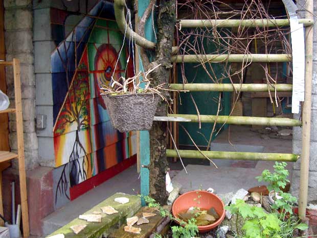 On one wall an old port window was built in. What a perfect fit this place seems to be for Hiromi-san! |