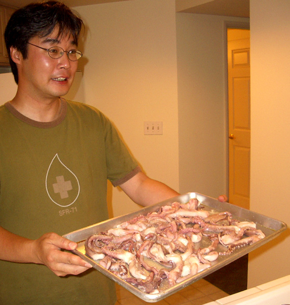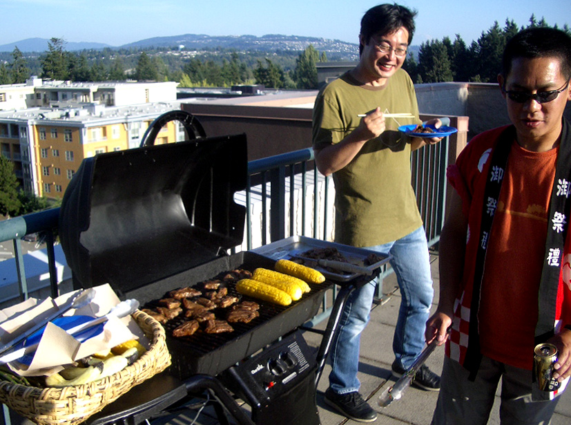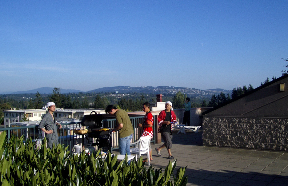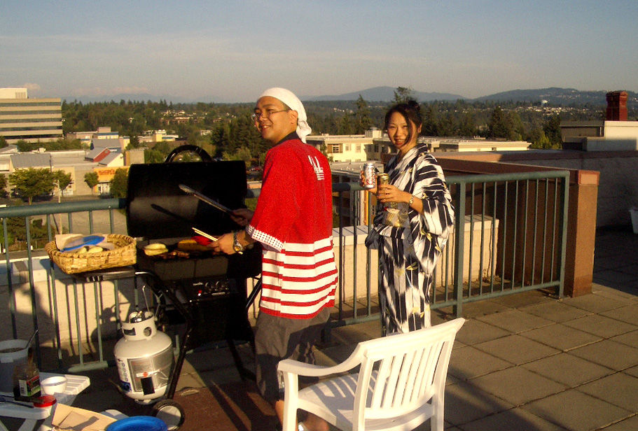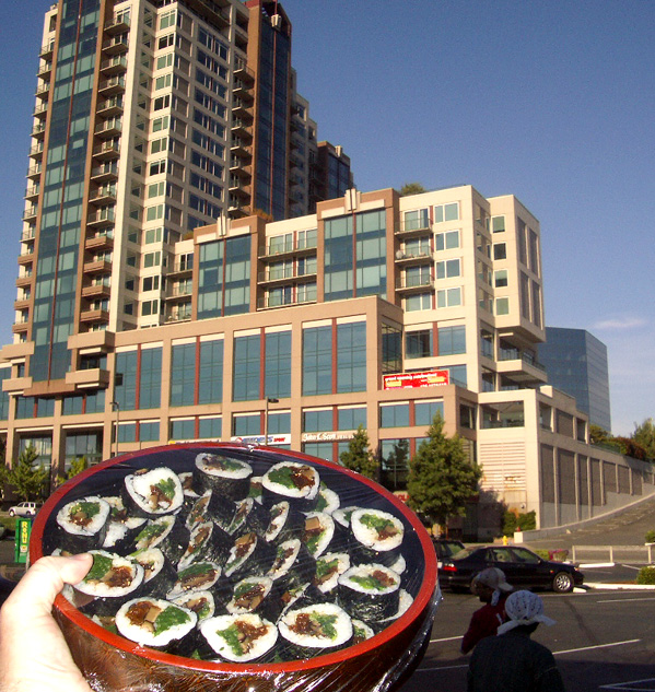 her shop in Bellevue, on the mid-level patio pictured above the plate of futomaki...