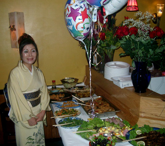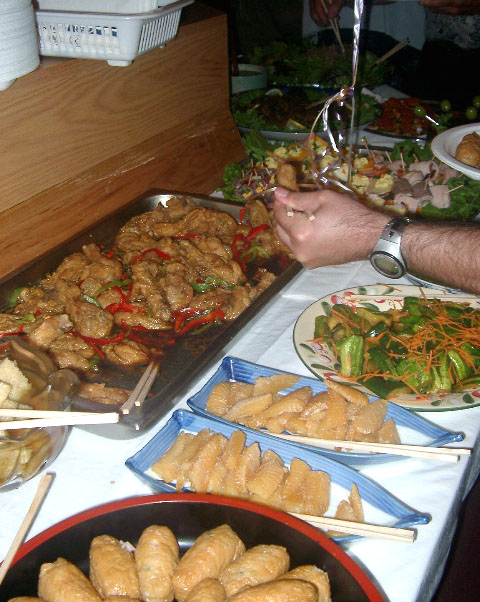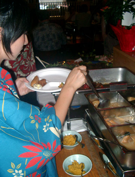 Hiromi stopped hosting long enough to enjoy a quick salad... |