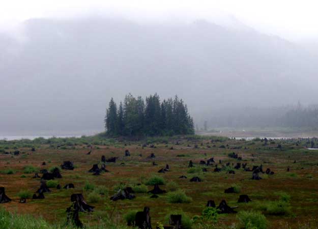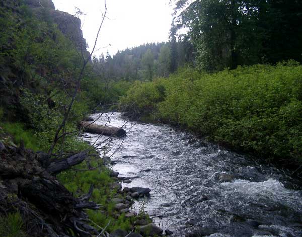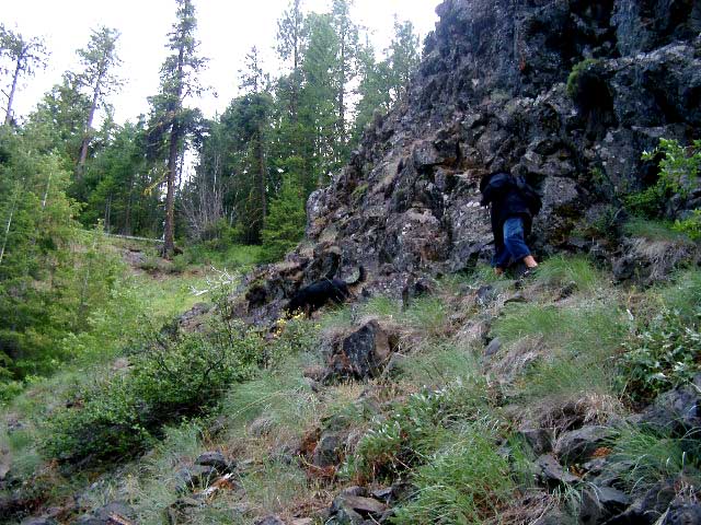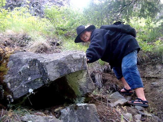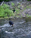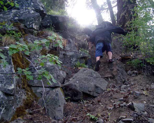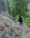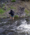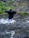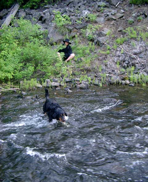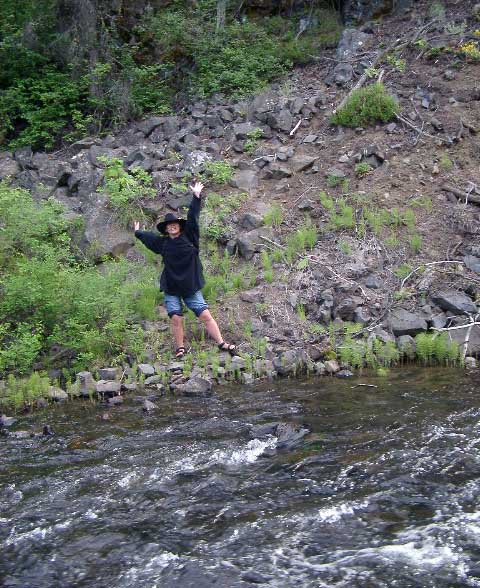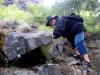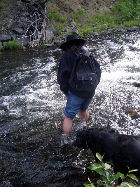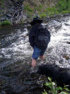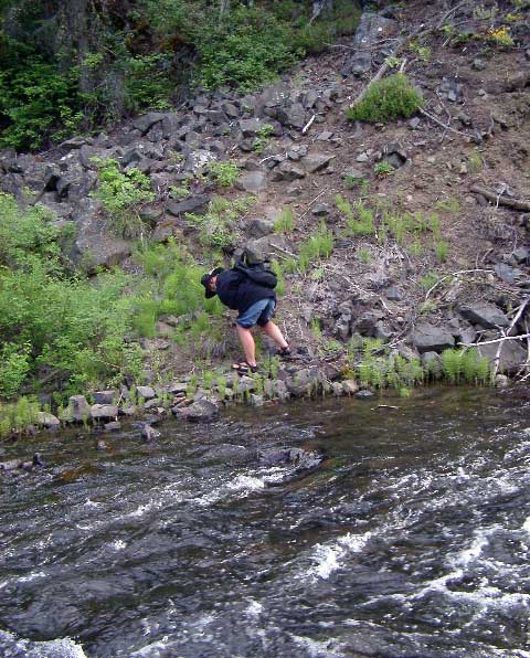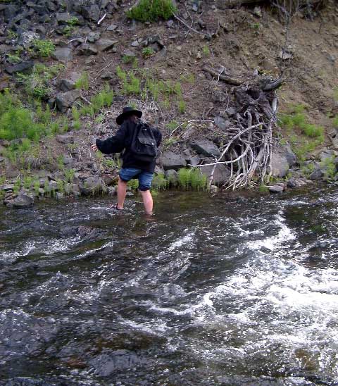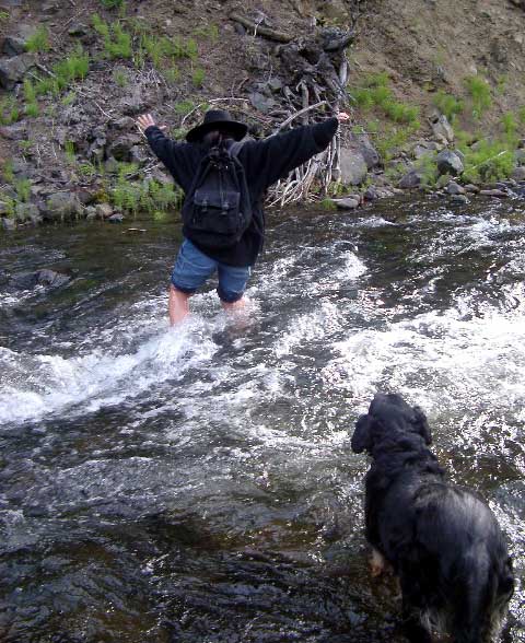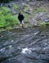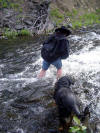 my boots over... Right: Looking back after crossing. I was glad to have a good walking stick (thanks Sister Jan & Matt!)... |