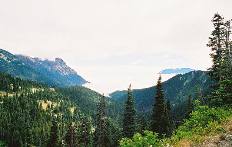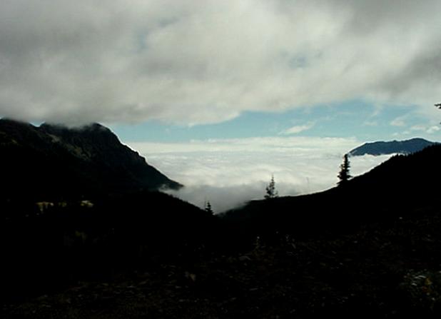 This shot looks down upon the clouds covering Port Angeles and the Strait Of Juan De Fuca. For a brief moment I could even make out Victoria, BC, 30 miles across the Strait... |
