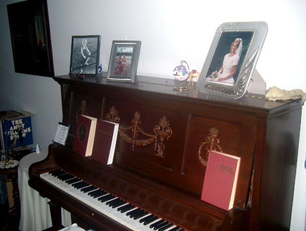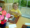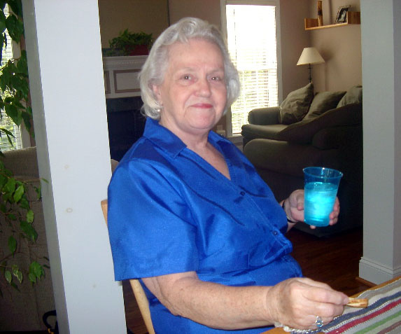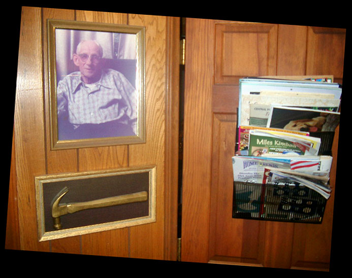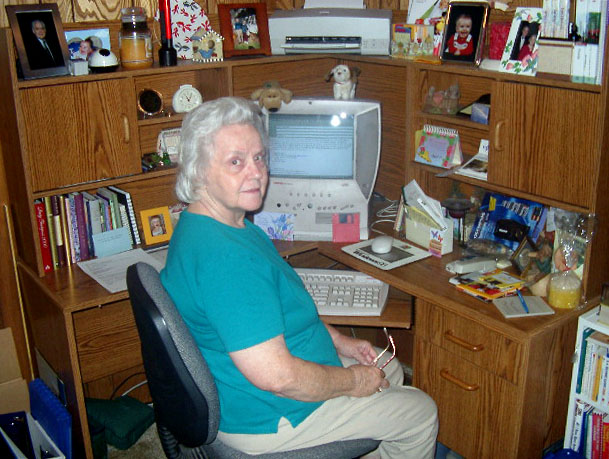 Beloved Mother in her home office... a picture of my grandfather (Mother's father) hangs on the wall, along with his hammer... "Grandpa Was a Carpenter"... |