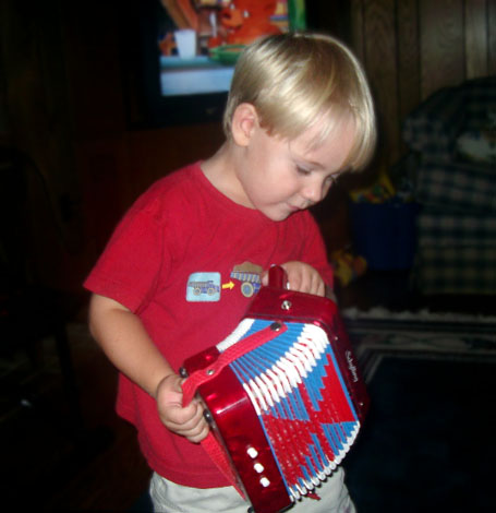 Young Ryan seems to be taking well to the accordion! |