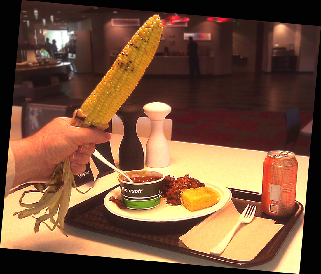 Wednesday, July 25 In the Microsoft Advanta cafeteria... grilled corn on the cob with a husk handle, southern style... |
