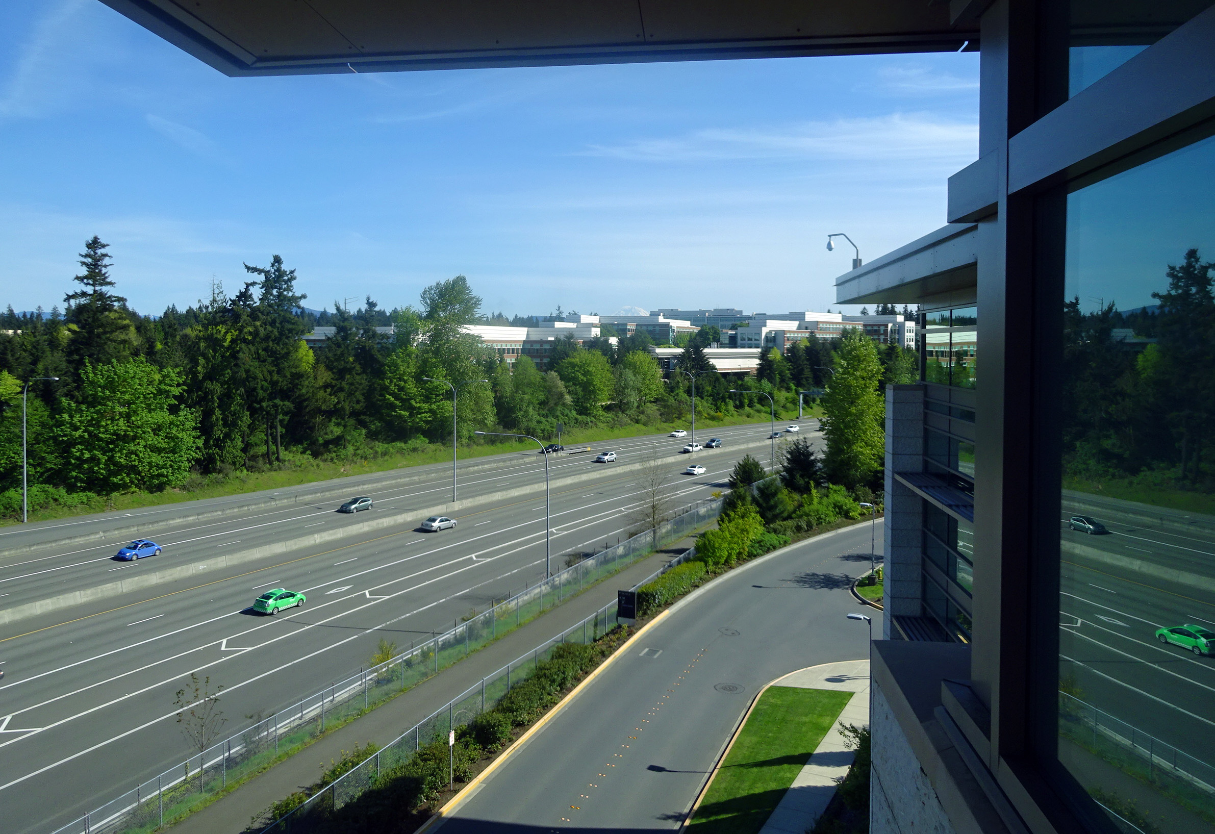 From Studio D... southward, over the 520 FRWY, toward Mount Rainier... |