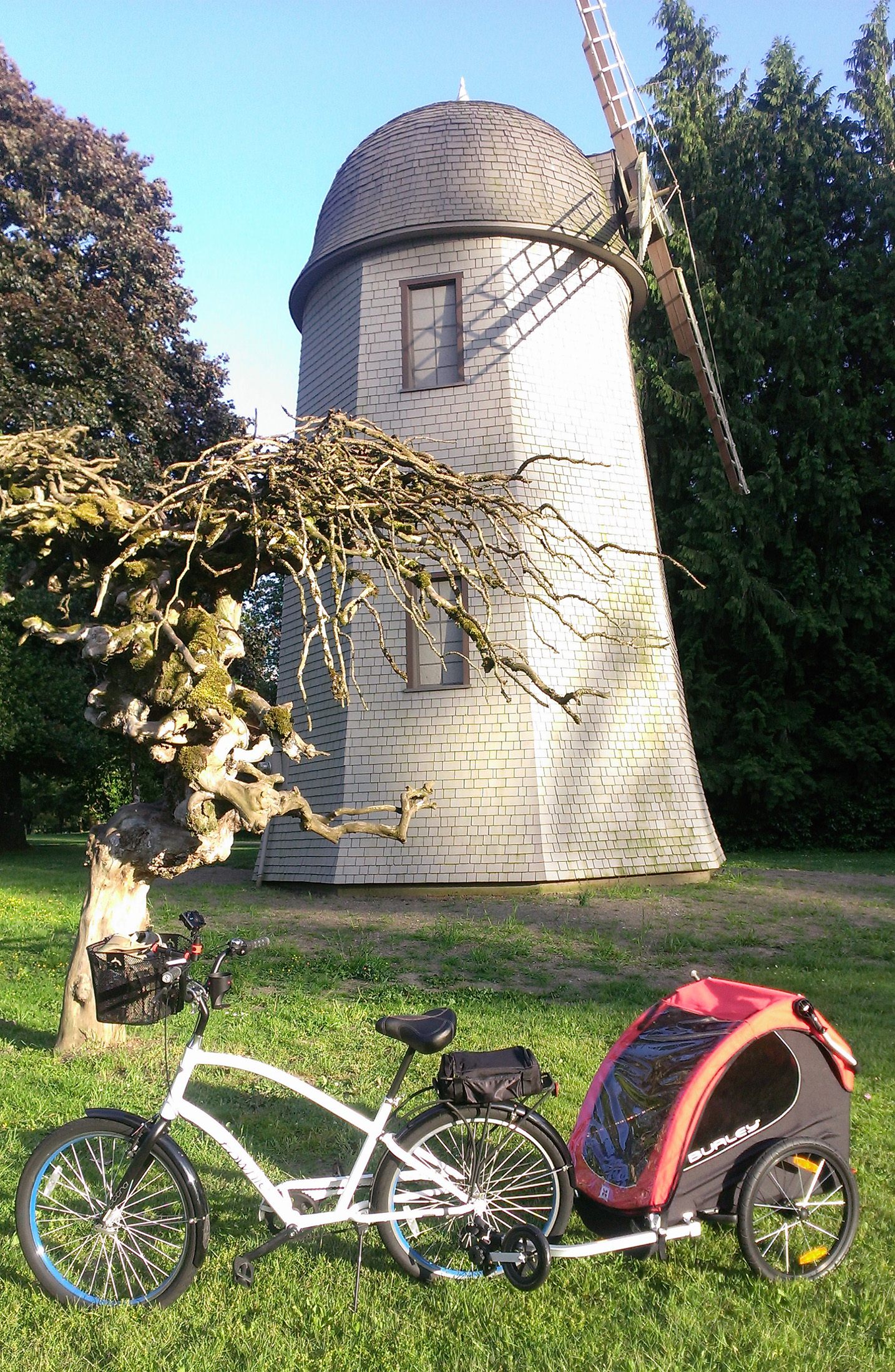 Tuesday, May 27 Redmond, WA... at Marymoor Park with the new Burley trailer attached to my Electra Townie. First test run = Pass! This should be a fine carriage for a certain Little Queenie... |