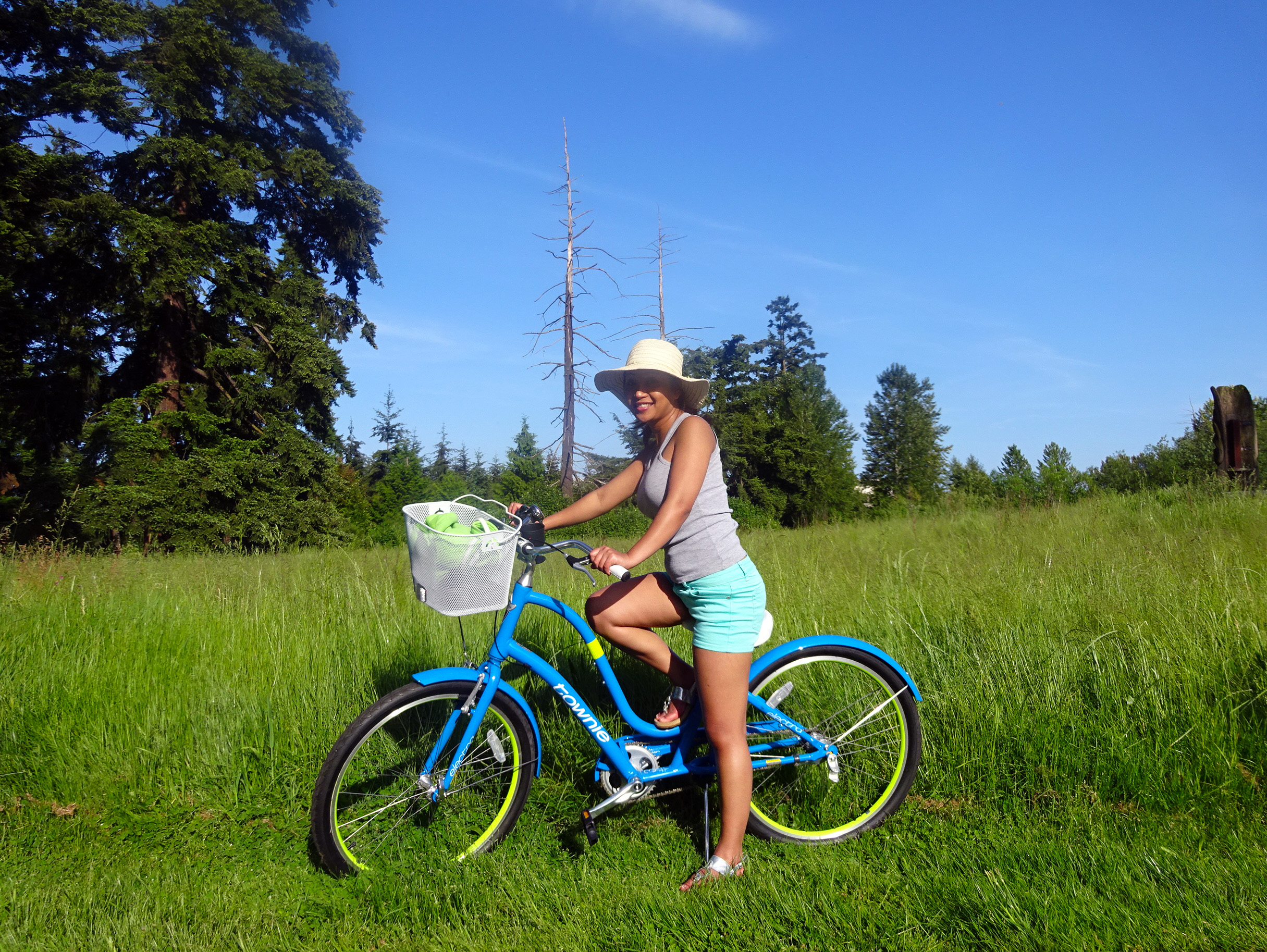 Hong on her new Electra Townie 3i cruiser bike... she calls it "Baby-Blue"... |