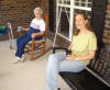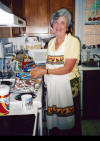 Sister Jan emulates a picture I took of Pete Davis on the steps of La-dee-da's back on August 23, 2003. Father would have appreciated this shot! |