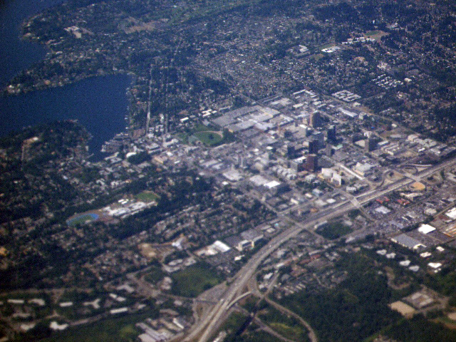 Approaching Sea-Tac... Mount Rainier 50 miles to the south. The red arrow in the middle shot points to Bigfoot at SeaTacPark.com... |
